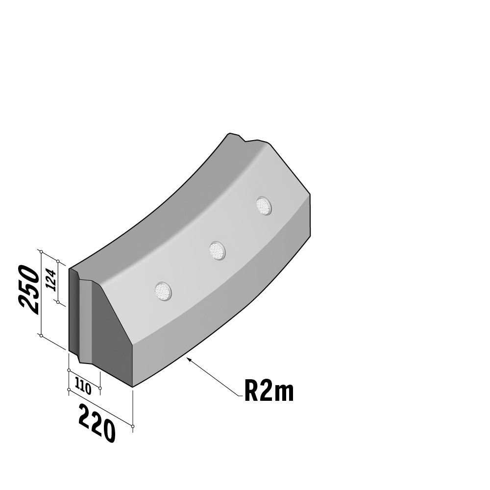 A range of 110-220 profile kerbs with integrated reflectors.